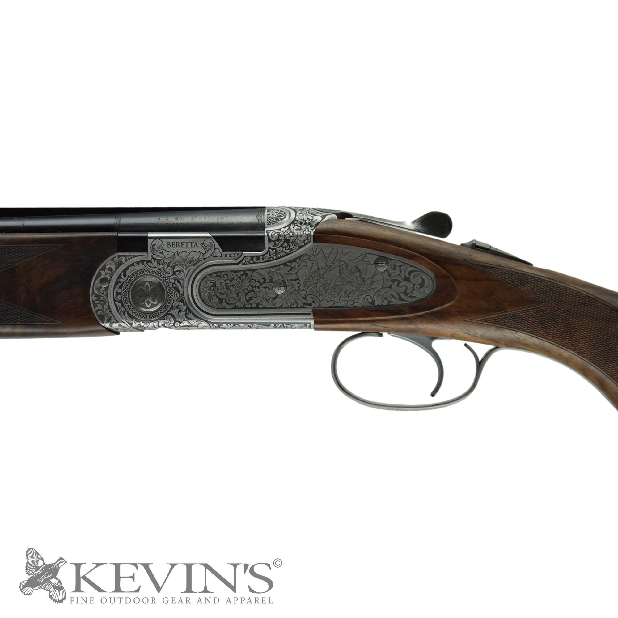 Specifications Product Description Shotgun Gauge: .410 Gauge Action: O/U Barrel Length: 28in Barrel Type: Double Chambers: 3in Chokes: Interchangeable Finish: Coin LOP: 14 1/2in Manufacturer: Beretta Model: 687 EELL Classic Stock: Prince of Wales Triggers: Single Weight: 6.65 lbs